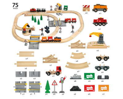 BJT016 Houten Treinbaan - Bigjigs Bergen treinset (112 delig)